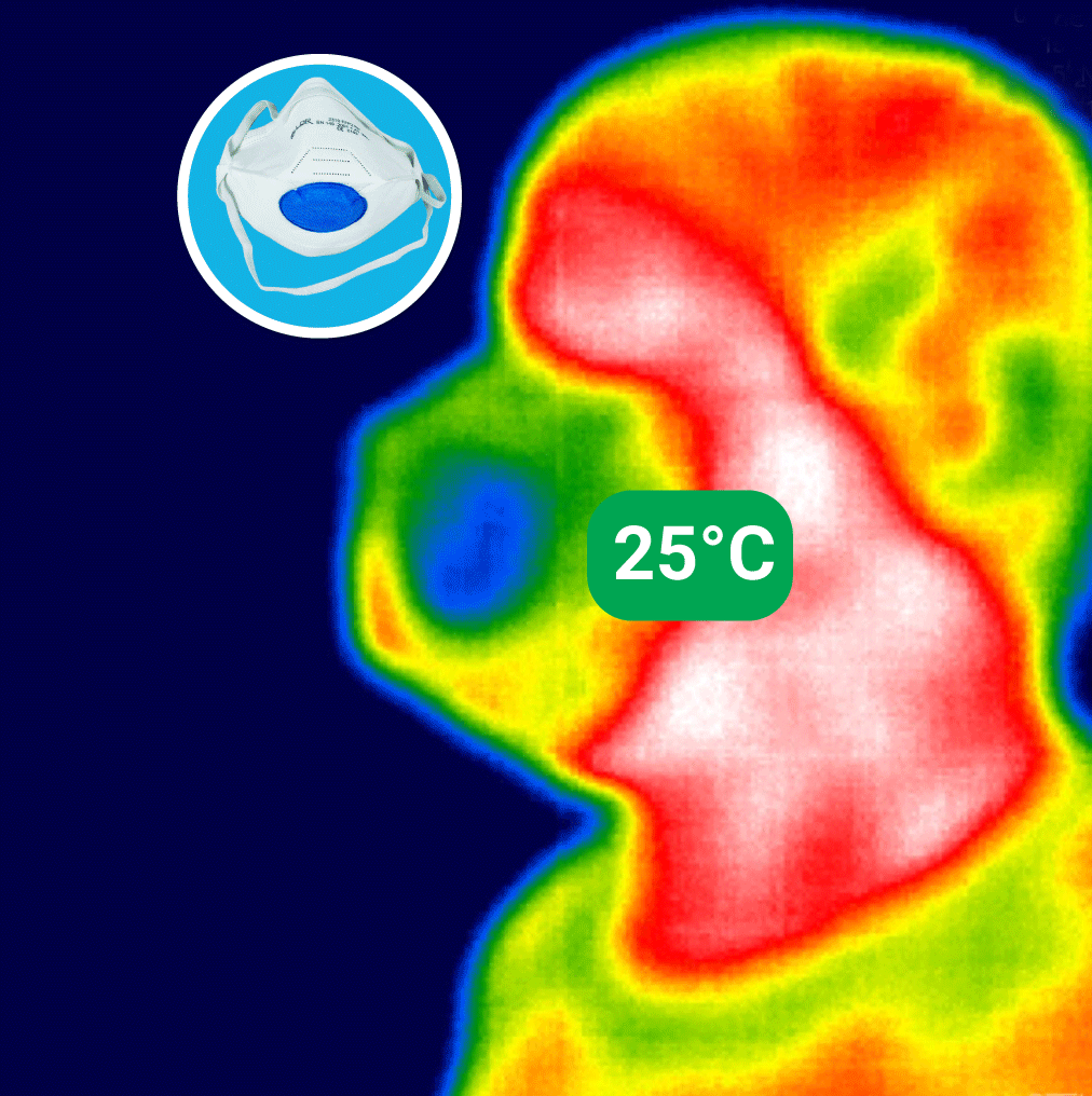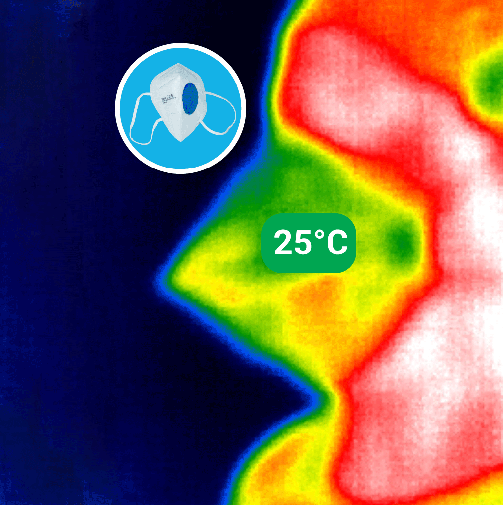 Dicht sitzende FFP2 Maske erzeugt starke Stauwärme und Feuchtigkeit innerhalb der Atemschutzmaske. Die Anwender: innen fühlen sich nach kurzer Tragezeit unwohl was sich negativ auf die Leistung auswirkt