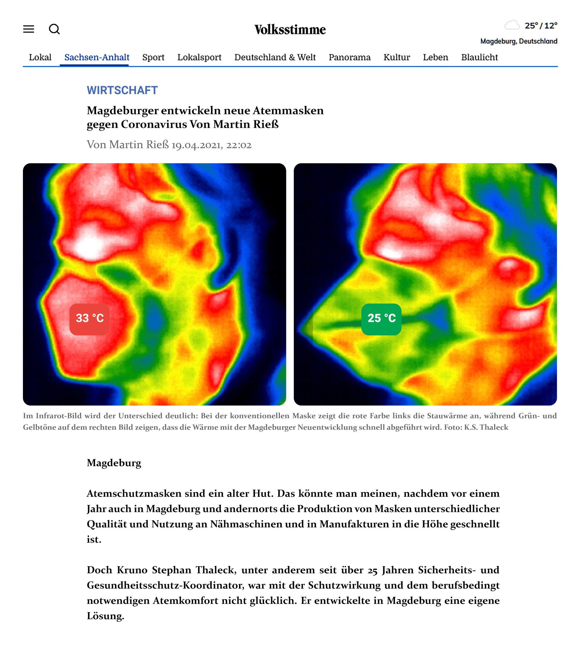 Die Magdeburger Volksstimme schreibt in Ihrer April Ausgabe über die neu entwickelte FFP2 Atemschutzmaske aus Magdeburg, die neue Breath-Clear® Technologie, die wir in unserem Magdeburger Standort entwickelt haben und auch hier in Magdeburg fertigen.